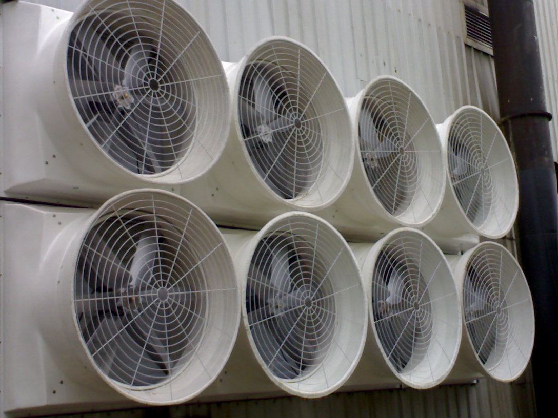 負壓風機向外排風,降低室內氣壓,使室內空氣變薄,形成負壓區??諝庥捎跉鈮翰畹难a償而流入房間。在工業廠房的實際應用中,負壓風機集中安裝在廠房一側,進風口在廠房另一側??諝鈱α鲝娜肟谶M入負壓風機。